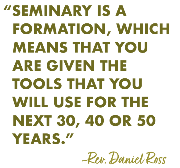 “Seminary is not an education. Seminary is a formation, which means that you are given the tools that you will use for the next 30, 40 or 50 years.” Ross continues, “Who is to say what society is going to look like in 30 years, toward the end of your ministry, but you have been given the tools to keep learning, to keep adapting and to keep proclaiming God’s Word where God has called you.”